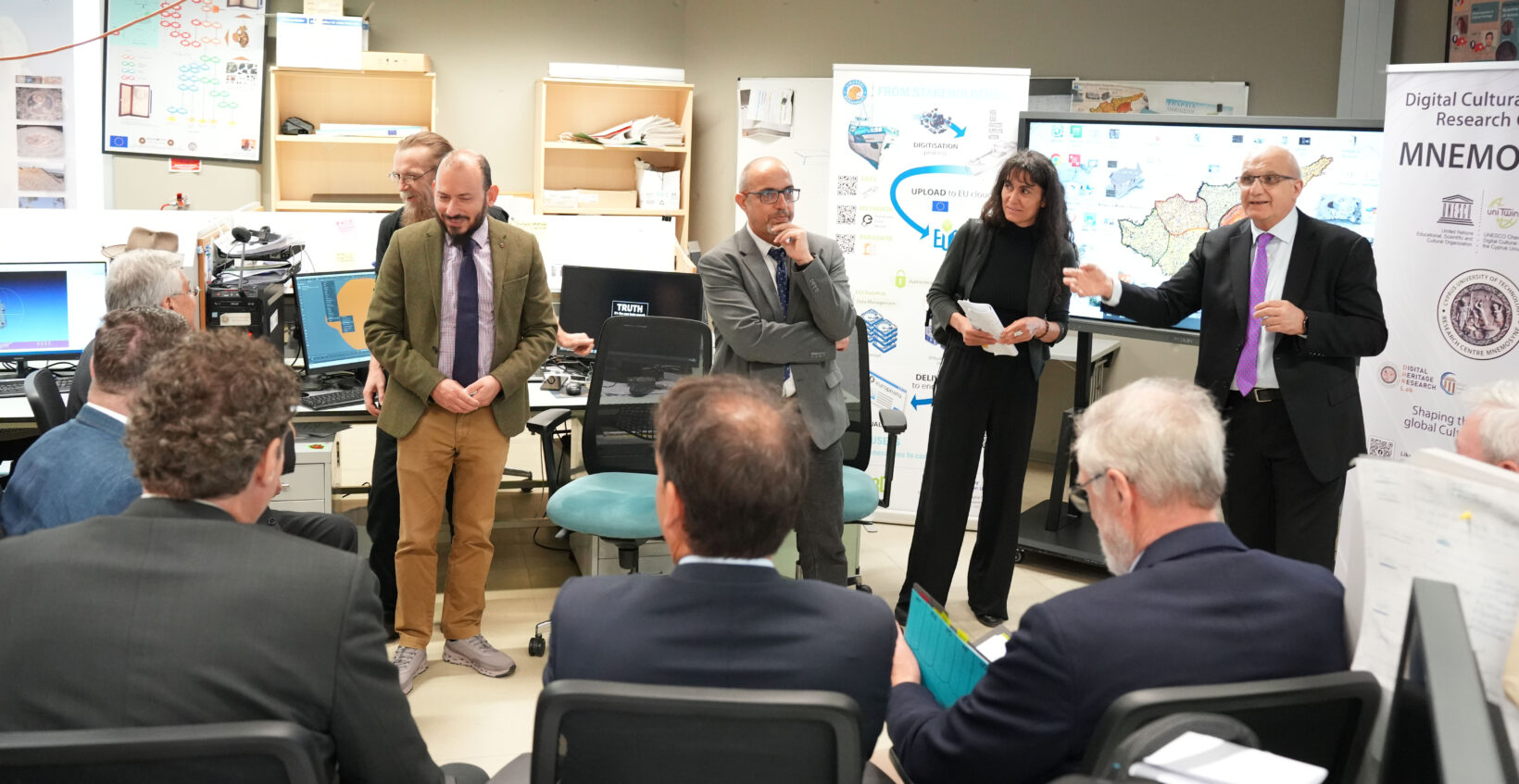 The focus of the visit was a comprehensive presentation and live demonstration of the pioneering work carried out by the UNESCO Chair, including its latest advancements under the newly established MNEMOSYNE Research Center. The Center represents a major evolution in the field, advancing from Digital Twins to Memory Twins through the integration of artificial intelligence and extended reality (XR) technologies—opening new dimensions for the preservation, interpretation, and experiential understanding of cultural heritage.