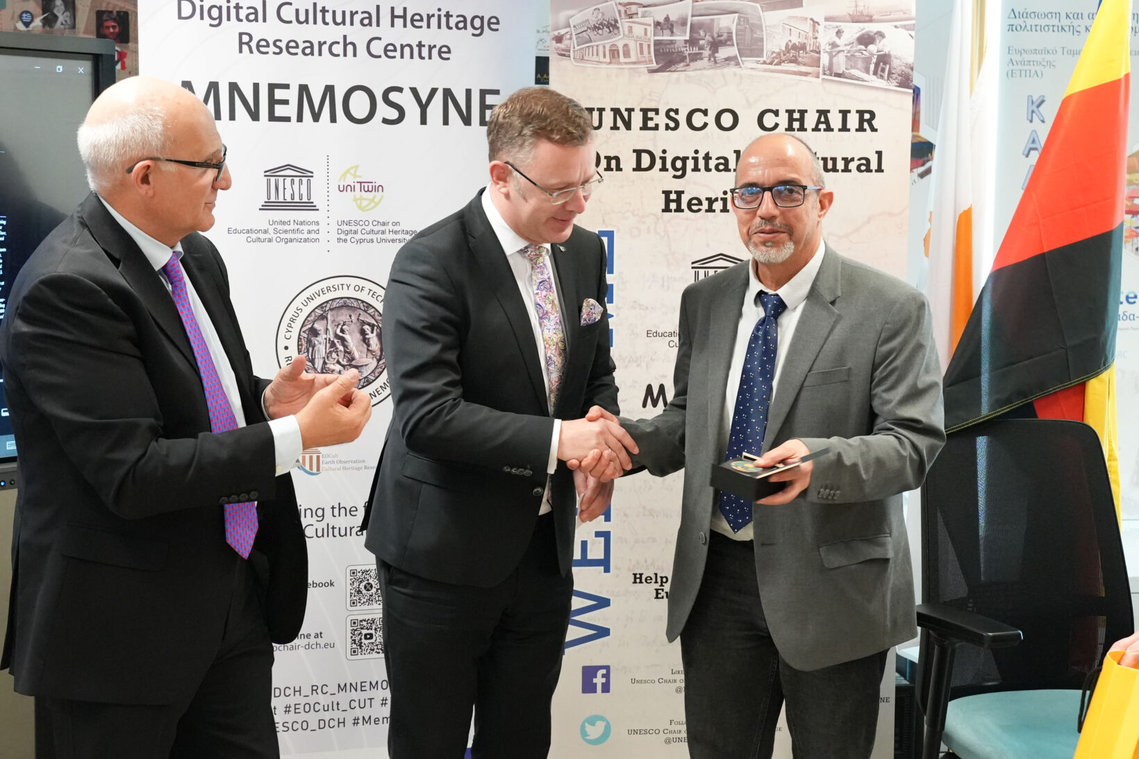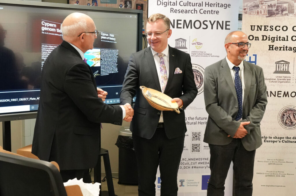 The Cyprus University of Technology was represented by its Vice Rector for Academic and Research Affairs Dr. Nikolas Tsapatsulis, alongside Dr. Petros Siegkas, Member of the Board of the MNEMOSYNE Research Center and Dr. Marinos Ioannides, Director of the UNESCO Chair. Both emphasized during the different discussions the strategic importance of science and Cultural diplomacy as well as international partnerships in addressing global challenges and shaping the digital future of the past.