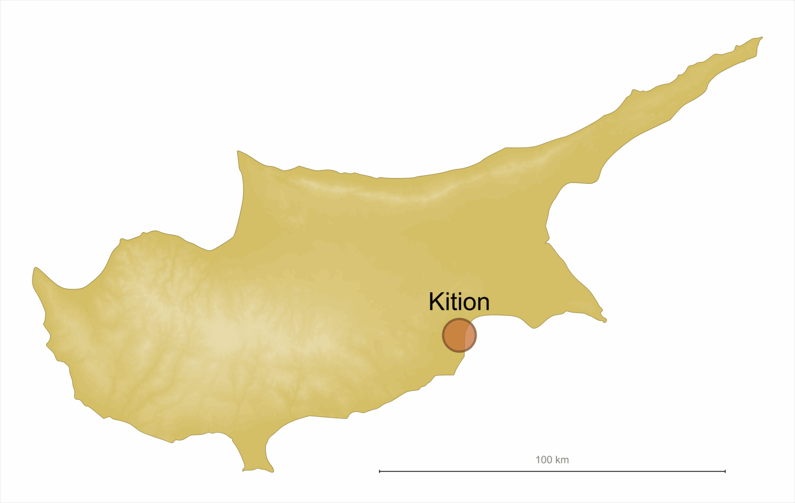 The ruins of Kition, the ancient capital of the Phoenician colony in Cyprus, are within the boundaries of the modern town of Larnaca on the south coast of the island. The ancient city was surrounded by city walls which are still visible.