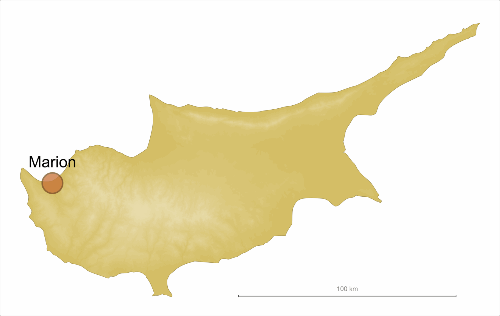 On the north west coast of Cyprus near the sea lies the ruins of Marion. This was one of the ancient kingdoms of Cyprus and became very important due to its wealth from the nearby copper mines at Limne.