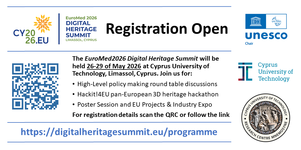 The Centre’s work focuses on digital documentation in Cultural Heritage, memory, identity, long-term monitoring and preservation, Use and Re-Use, such as 3D Fabrication, leveraging advanced 3D technologies and multi-, interdisciplinary collaboration. With a mission to safeguard and promote cultural narratives, the Centre aspires to become a global leader in digital heritage, bridging academia, research, innovation, policy, stakeholders and public engagement for a sustainable cultural future..